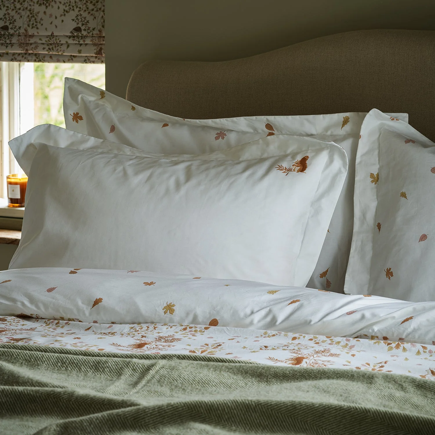 Bring the glow of autumn into your bedroom with this beautiful bedding set featuring Sophie's Woodland Friends design. The design embraces the playful antics of red squirrels, the gentle affection of hedgehogs and the joyful presence of robins. The earthy brown, orange and green leaves highlight the autumn transition, perfect for adding a cosy and charming touch to your interior.